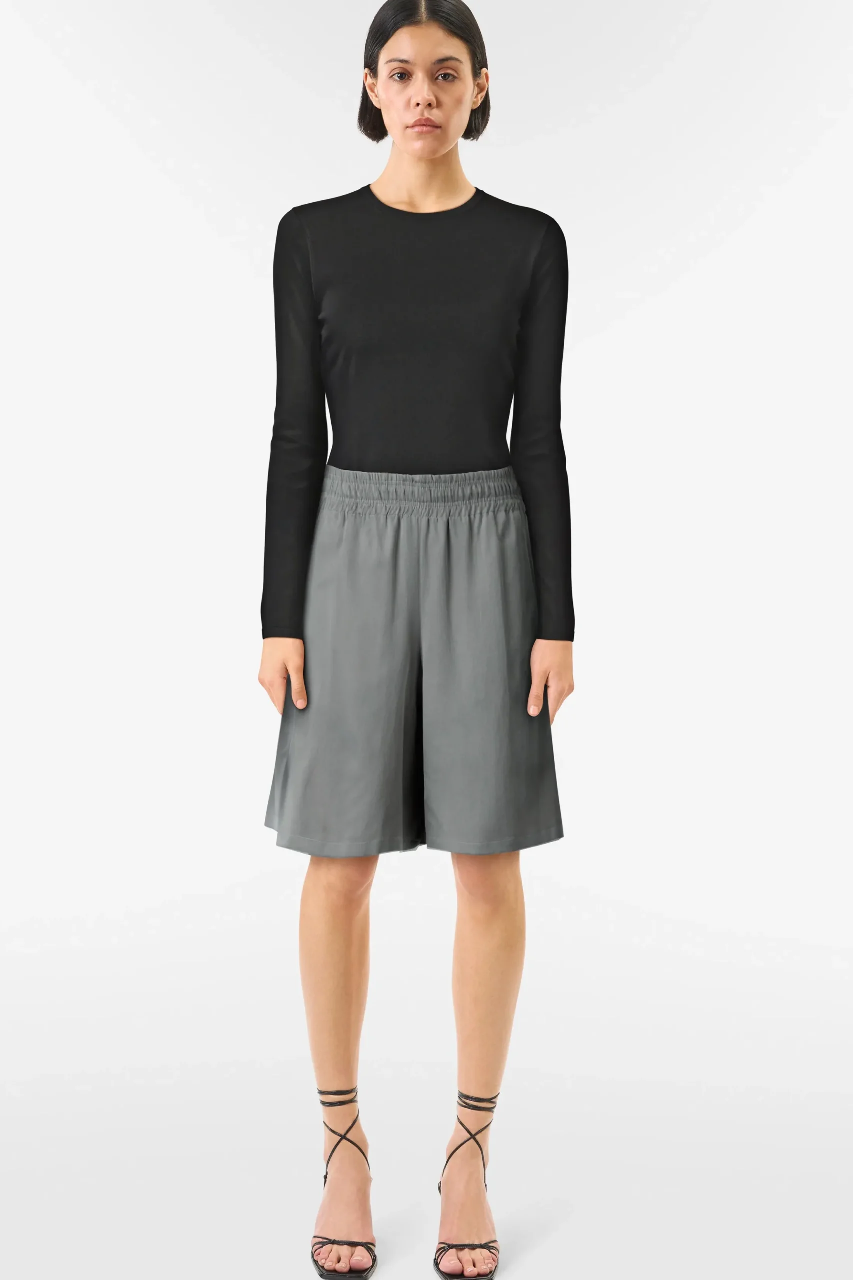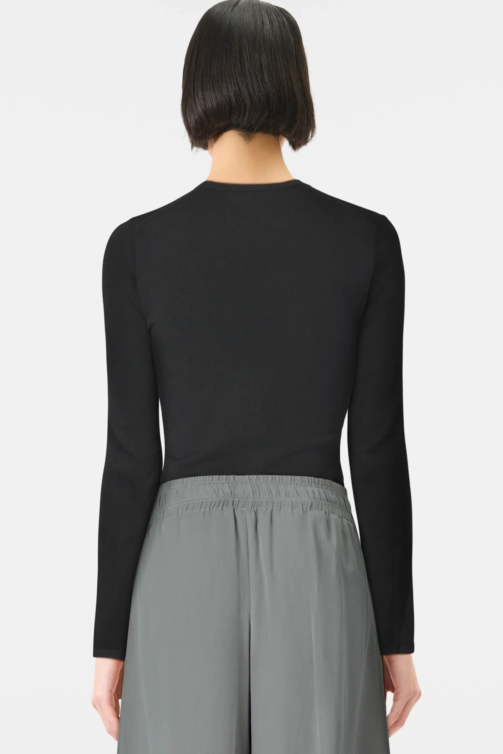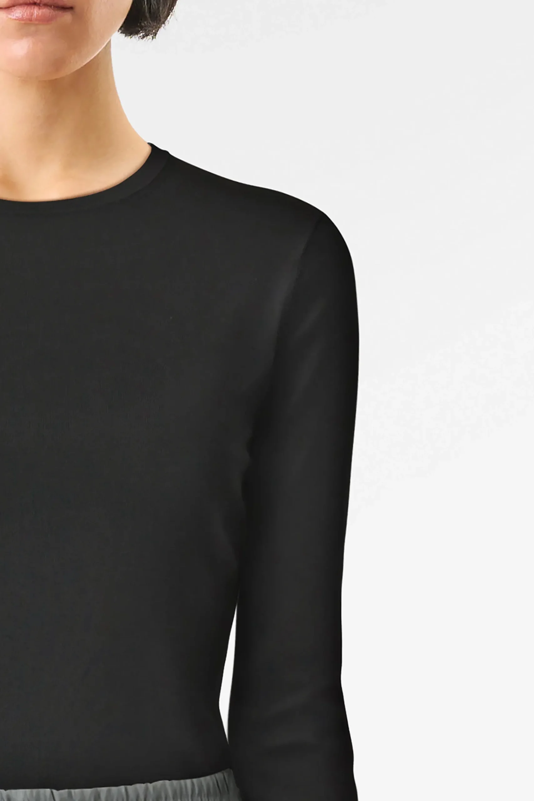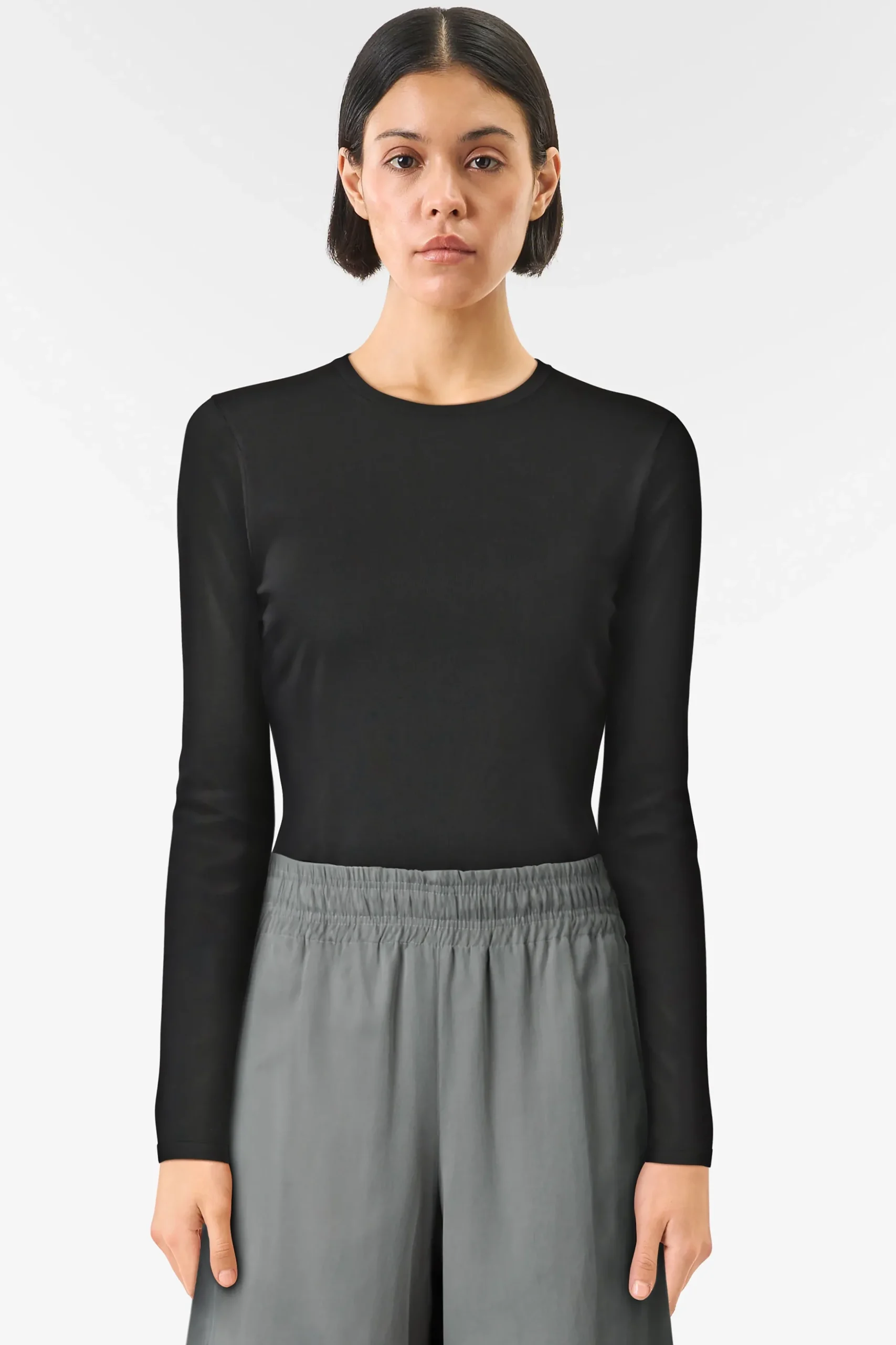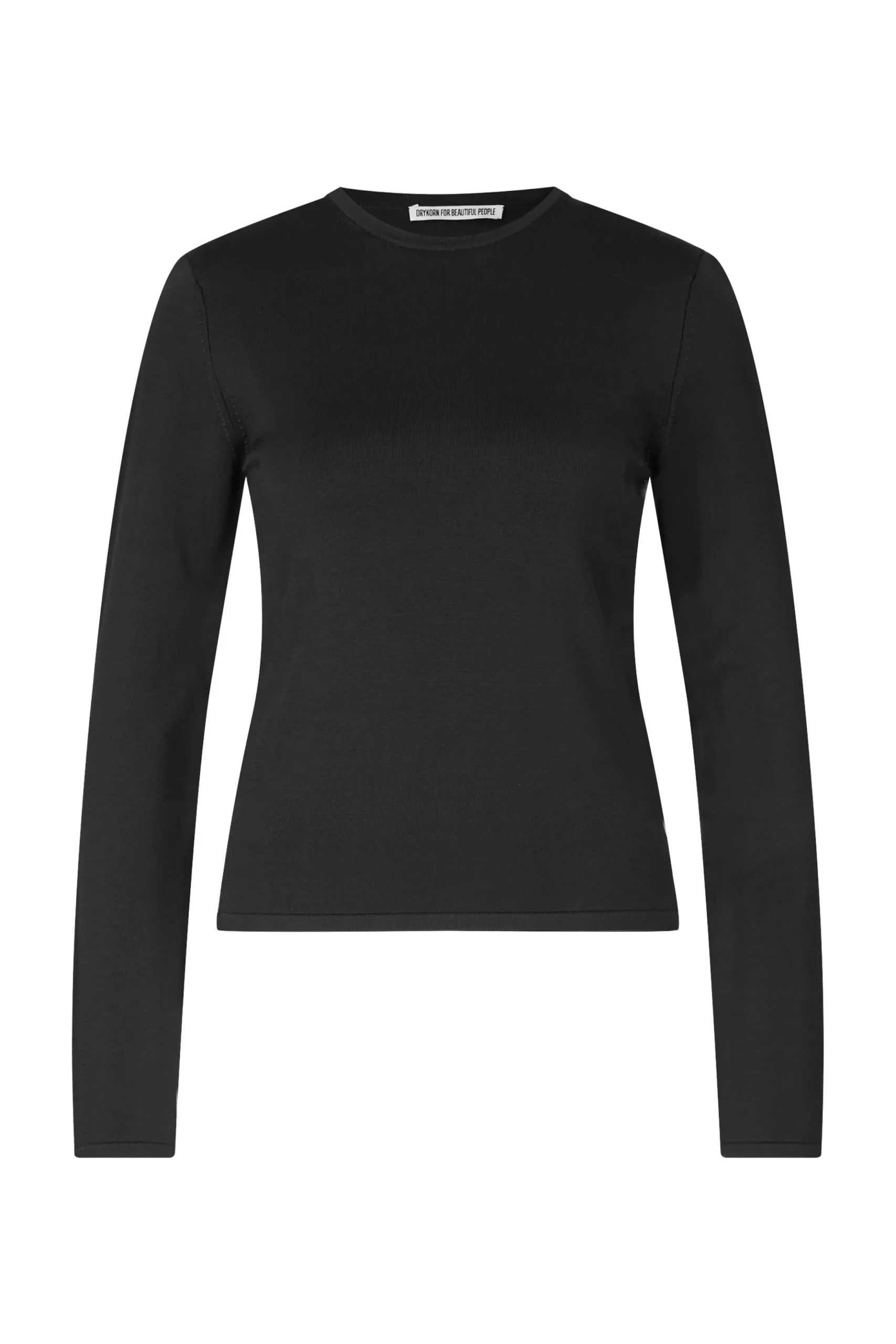 ANETKA is een slanke longsleeve met een ronde hals. Het is licht getailleerd. Gemaakt van glanzende viscose.