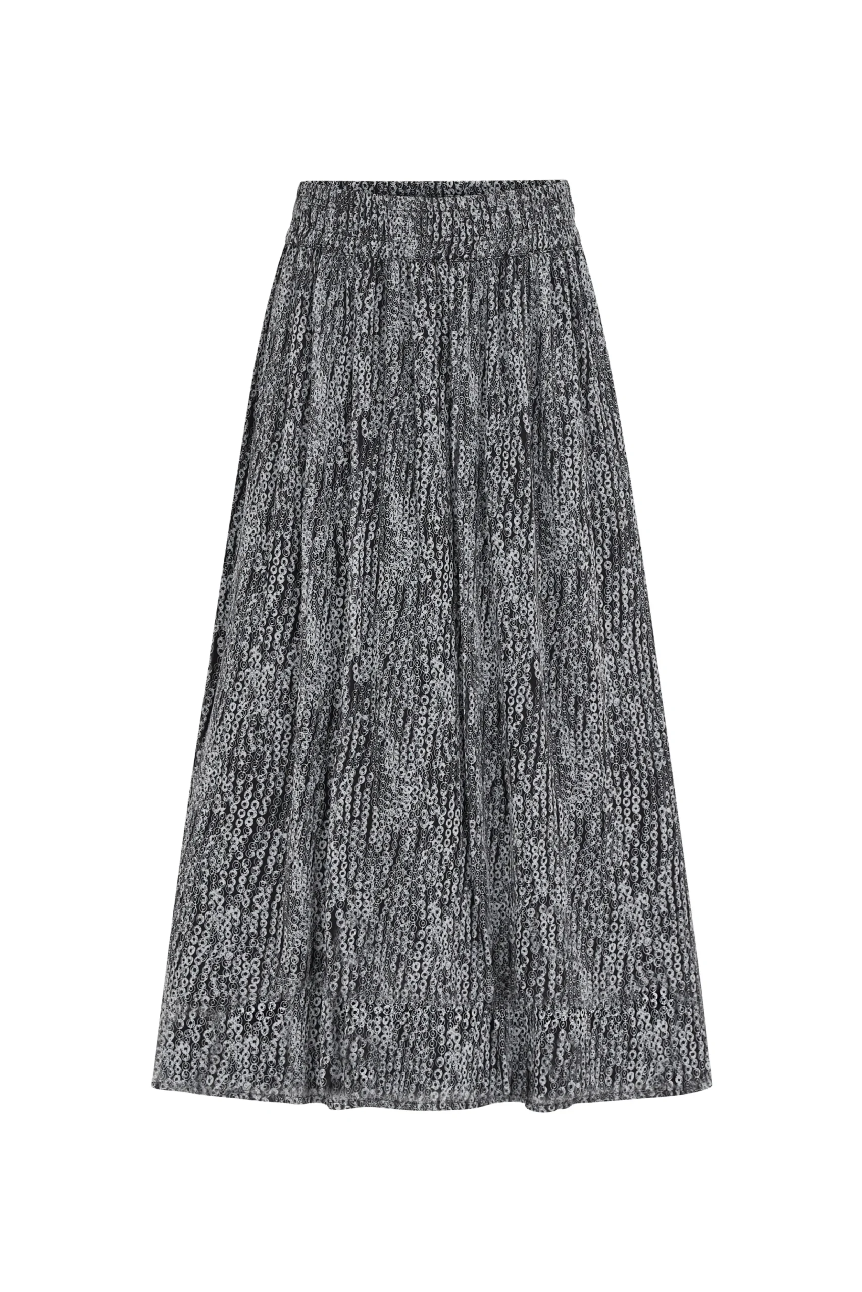 ATTRA is een uitlopende rok in midielengte met een elastische tailleband. De hoogwaardige en vloeiende viscosecrêpe zorgt voor een aangenaam daggevoel.