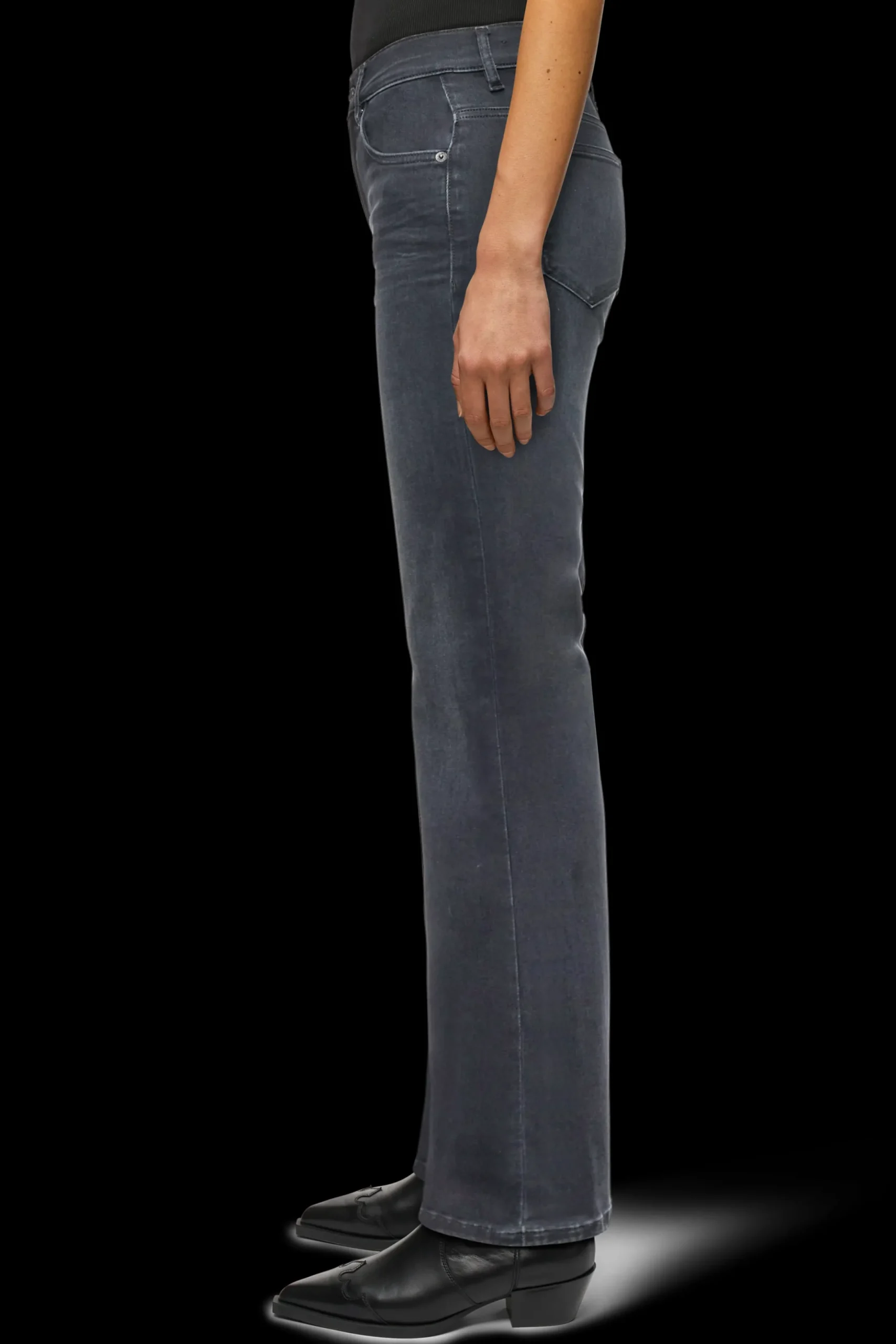 FAR_1 is een 5-pocket skinny jeans met een cropped en flared pijp. De aansluitende pasvorm wordt hoog in de taille gedragen. De opengeknipte zoom is een bijzonder detail. Het indigo-zwarte denim heeft een diepe kleur en een authentieke wassing, waardoor het een echte alledaagse essential is.