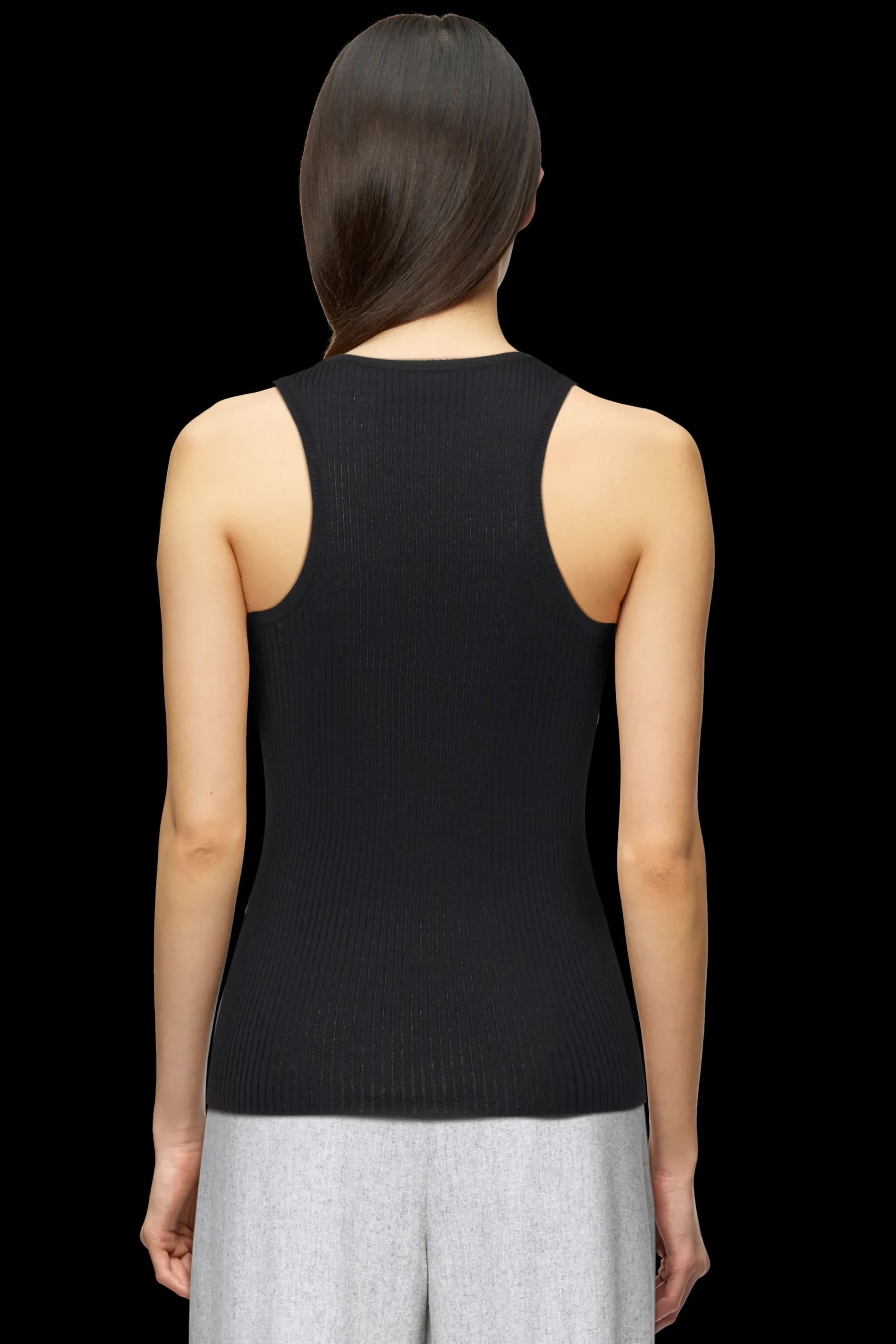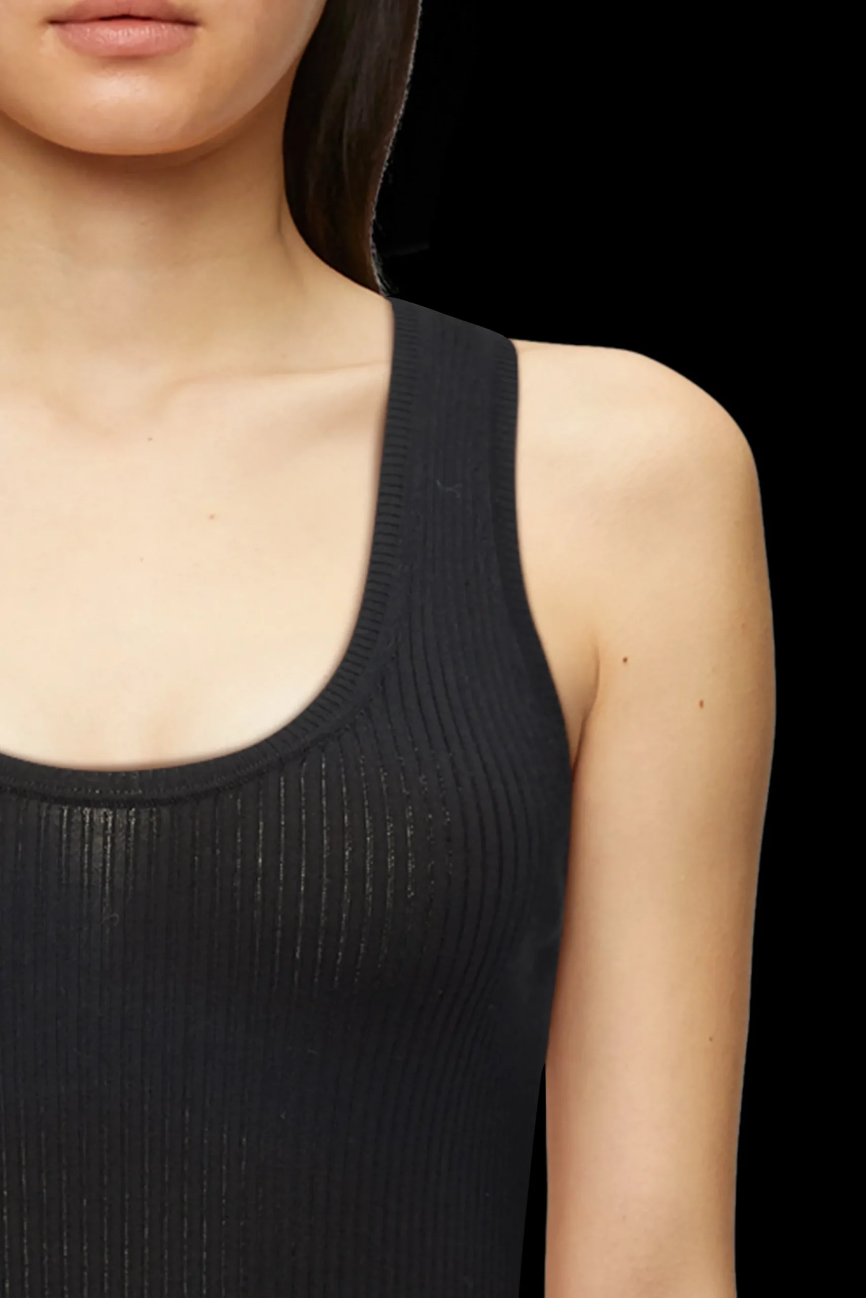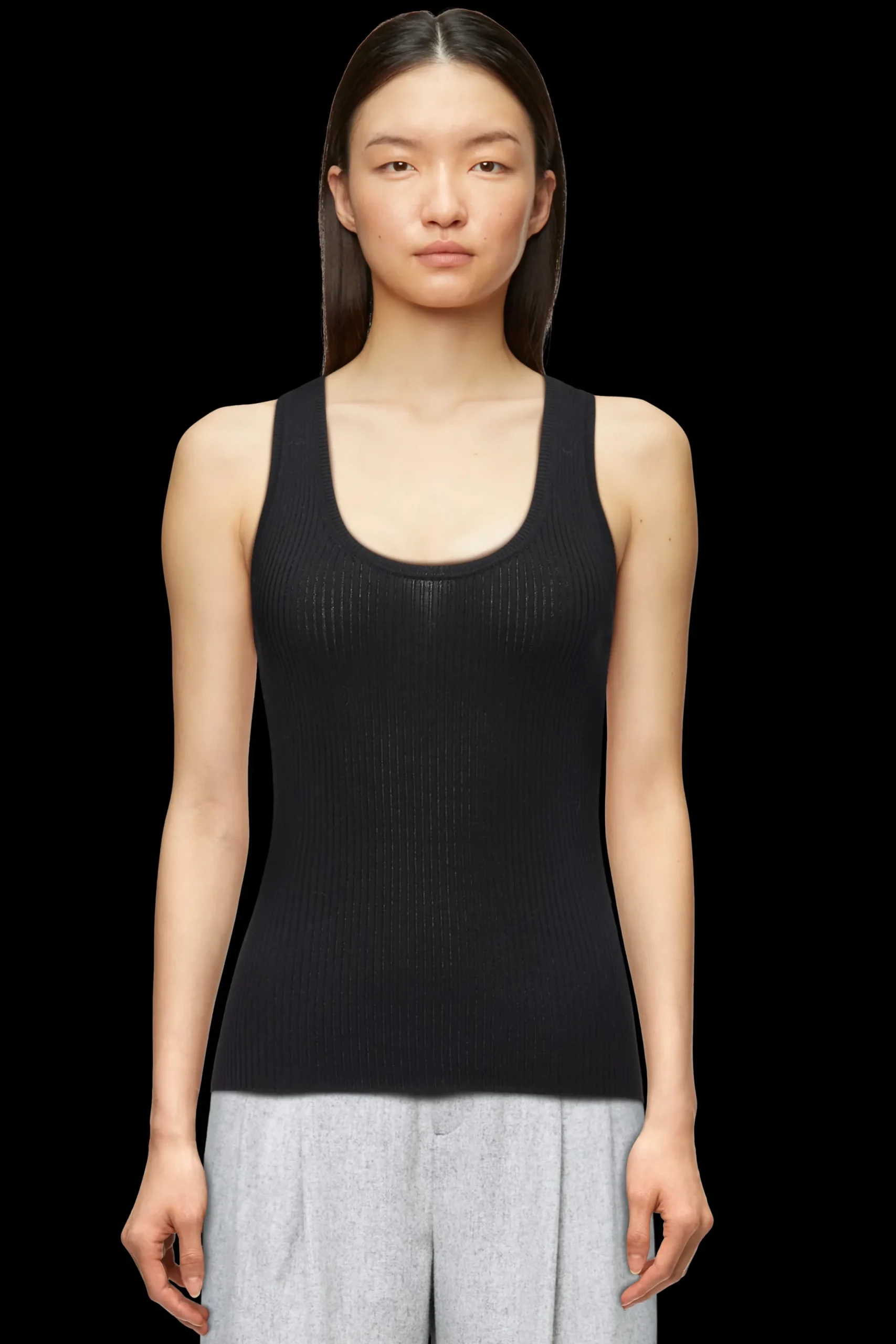 JIMA is een geribde gebreide tanktop met een aansluitende pasvorm en een vrouwelijke halslijn.