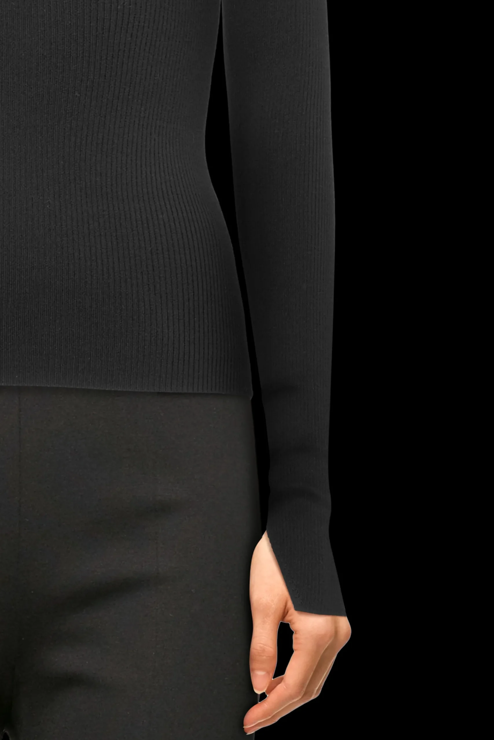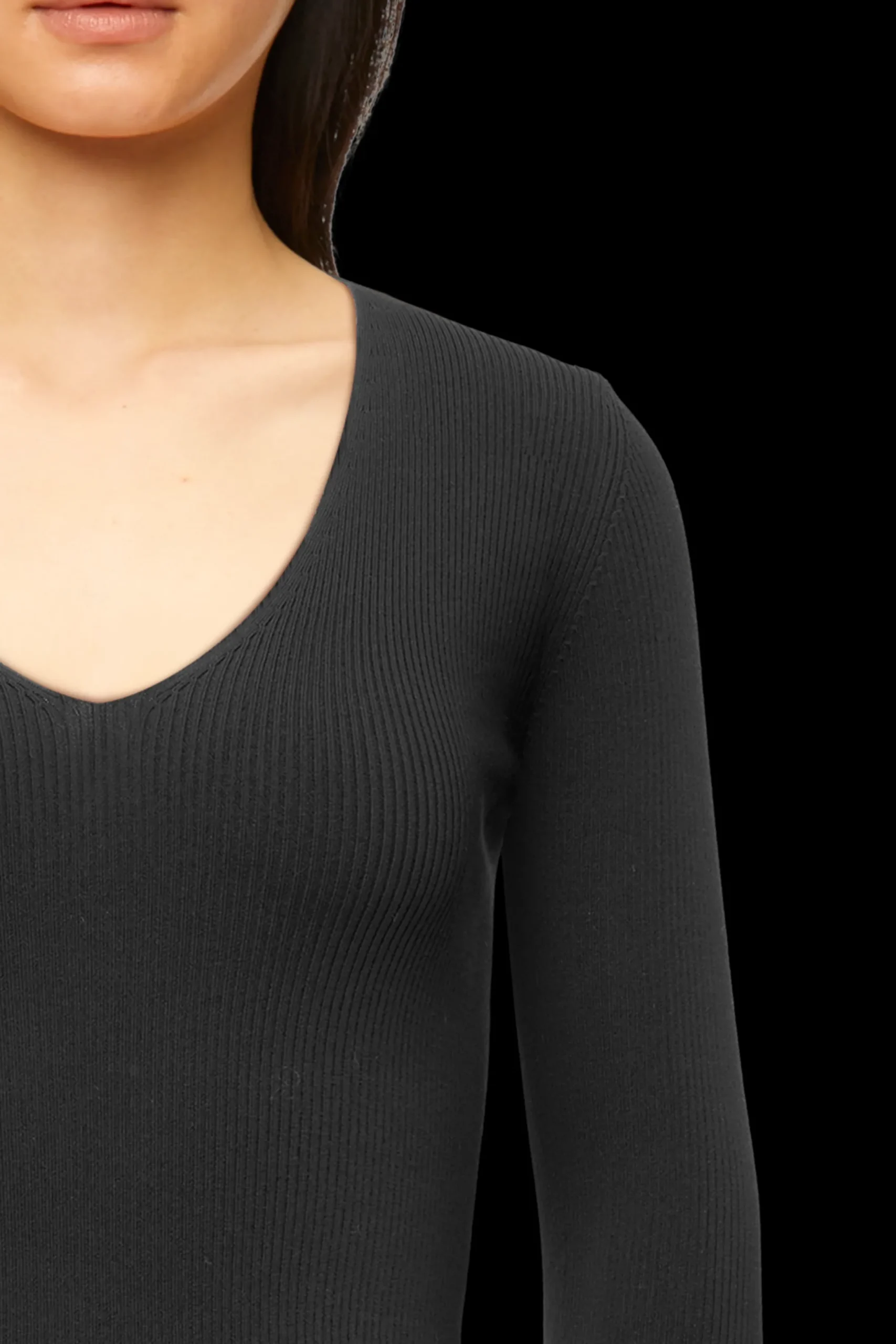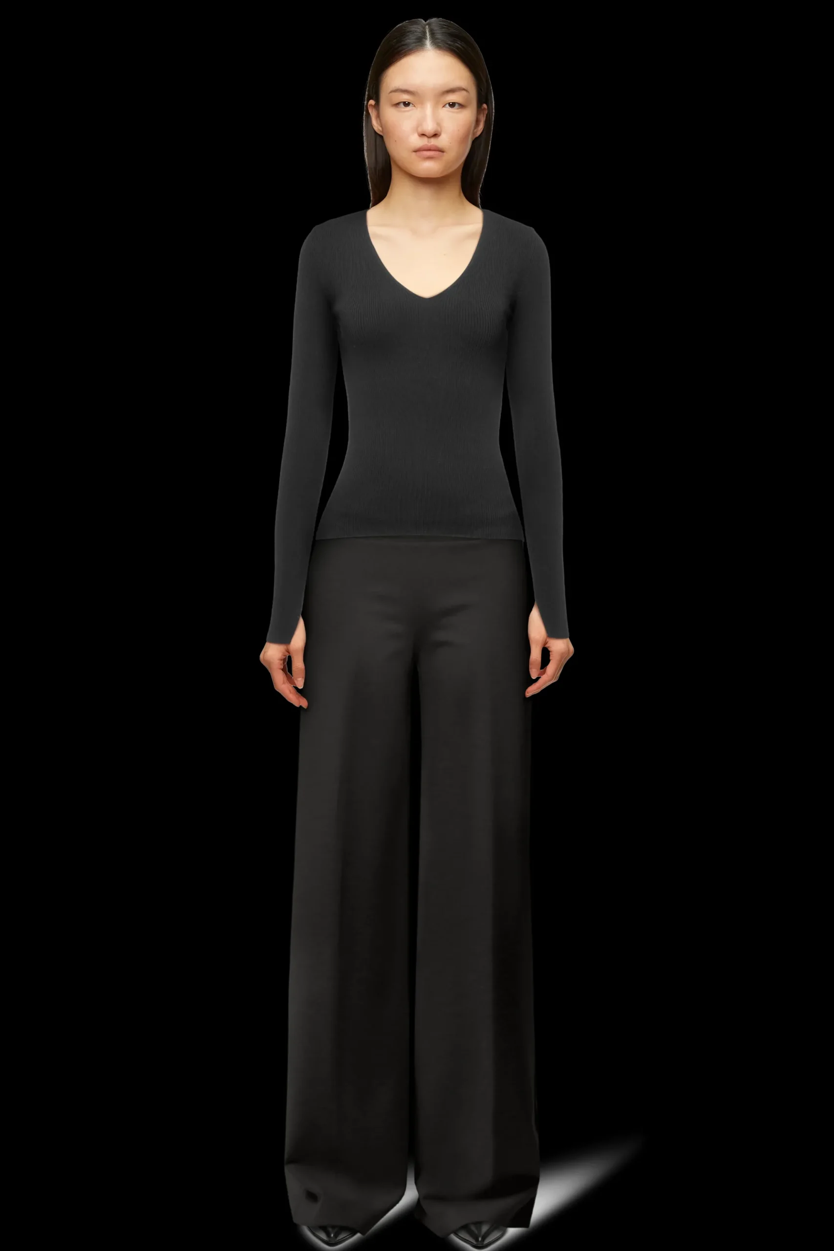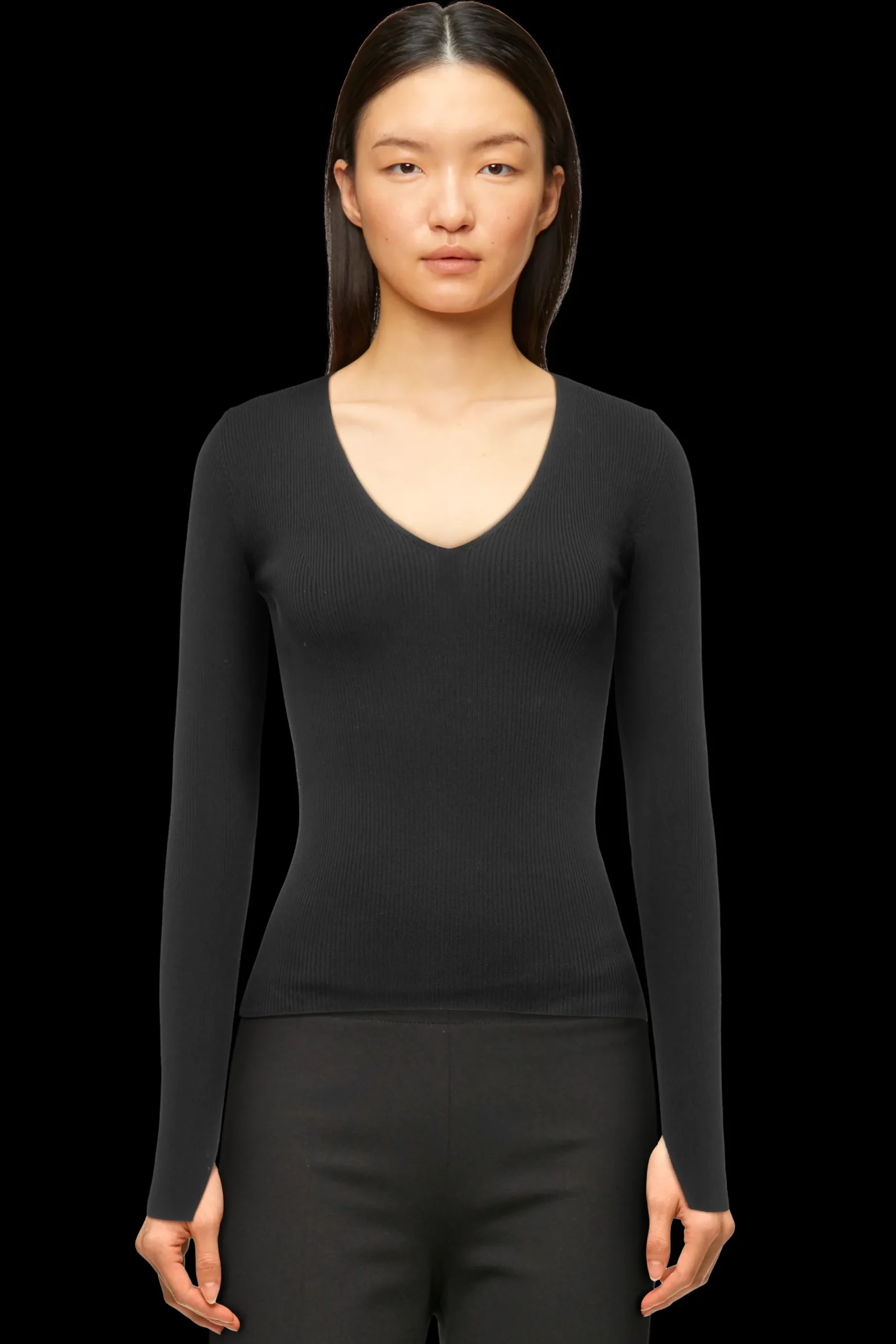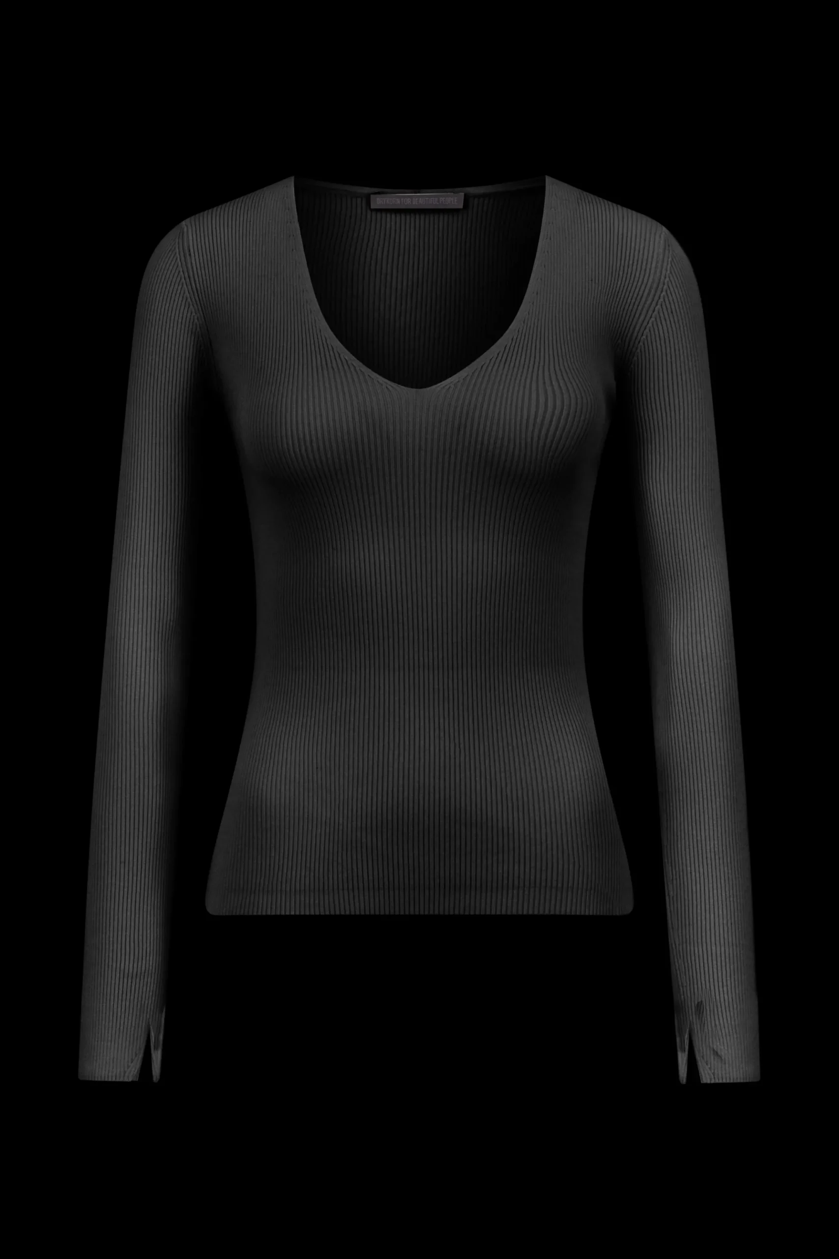 TAYLIA is een vrouwelijke longsleeve met een V-hals en een aansluitend silhouet. De splitjes aan de mouwen zijn een bijzonder detail.