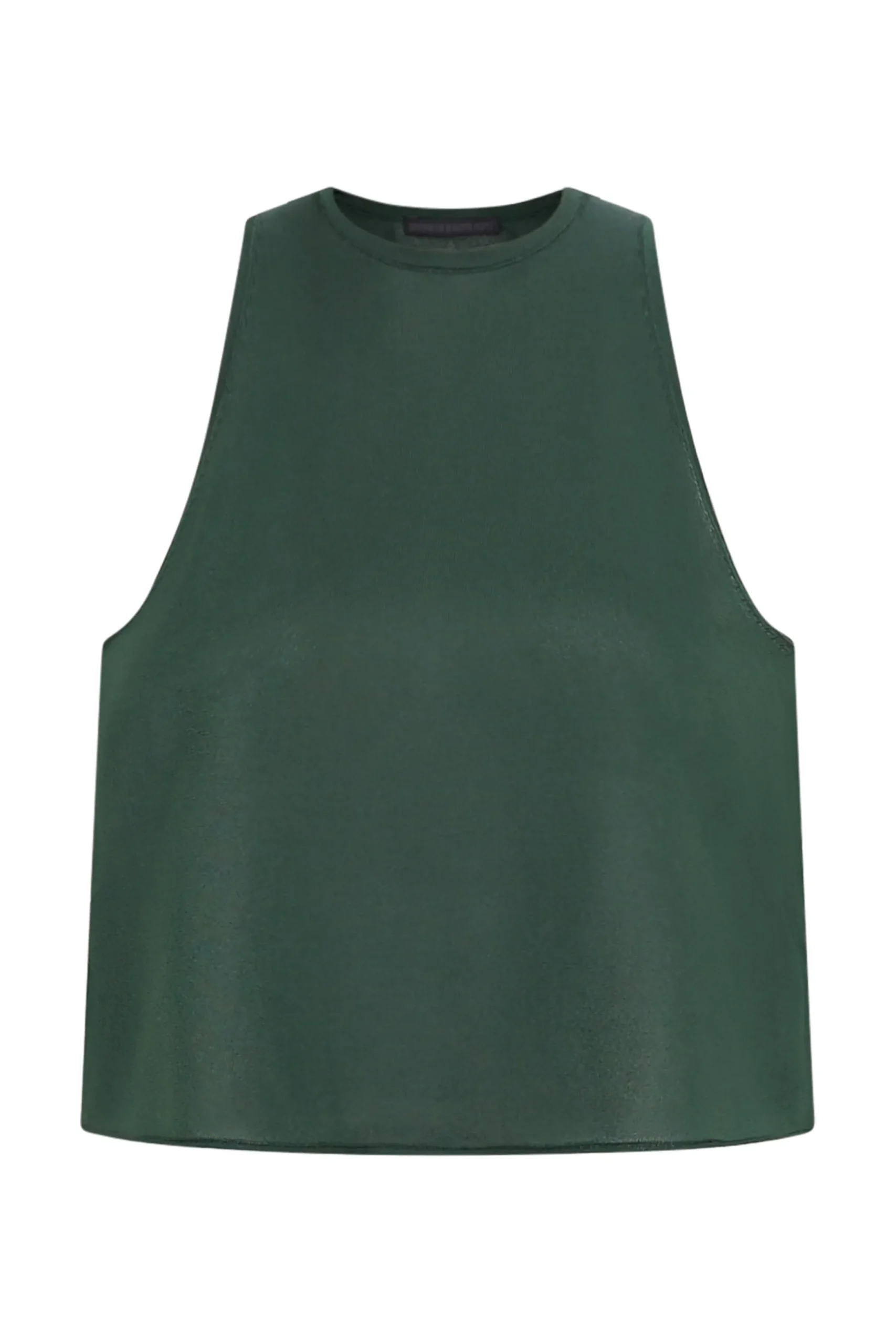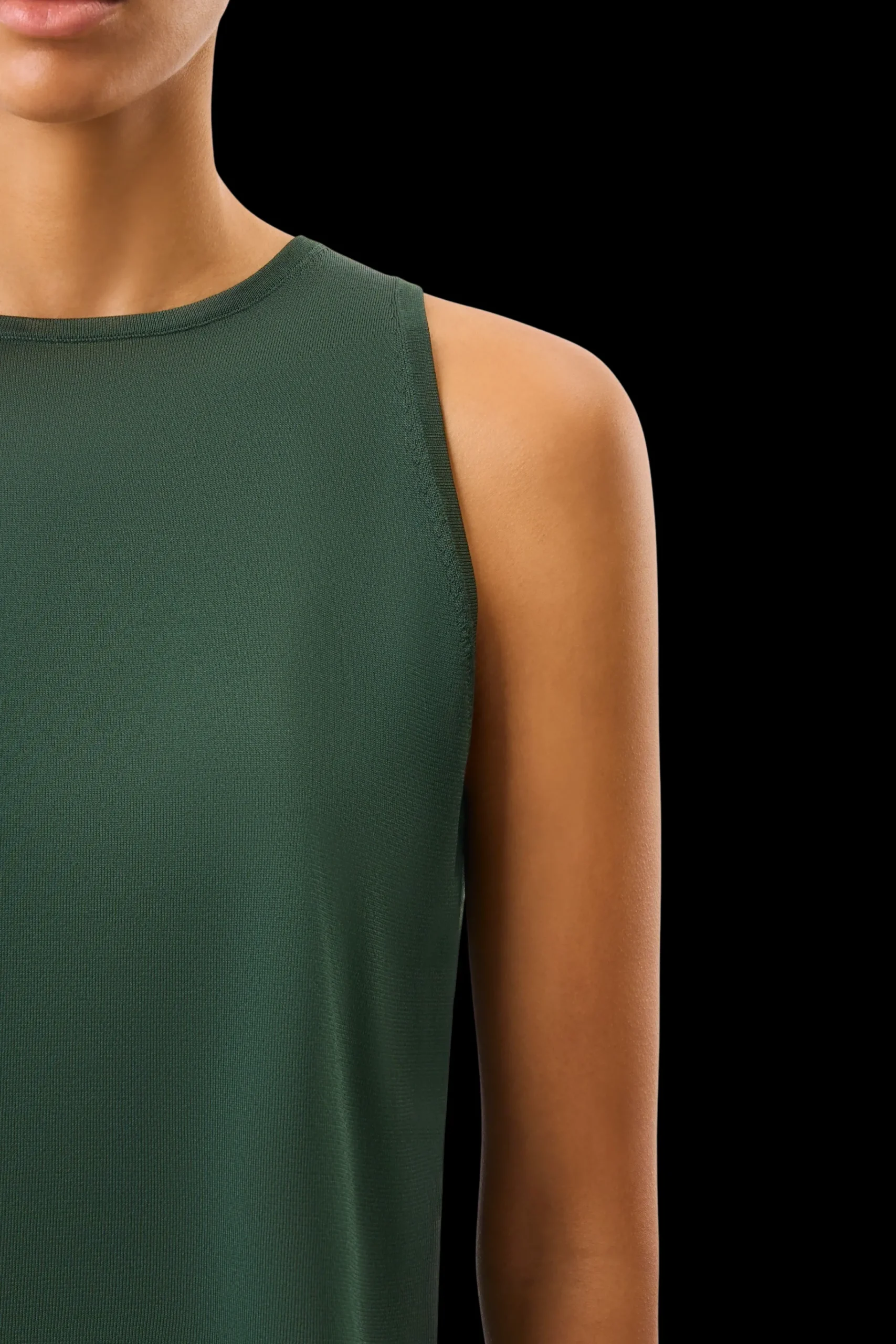 VALLIE is een vrouwelijke gebreide top in A-lijn pasvorm. Het heeft een ronde halslijn en is mouwloos, gemaakt van een luxe acetaatgaren voor een prachtig glanseffect.
